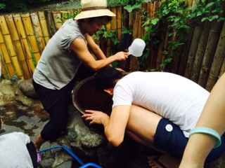 なので、私達だけのプライベートな場所でゆっくりBBQ! と思いきや五右衛門風呂があったりで それを沸かすために山小屋の下に流れている 川から水を組み上げて お風呂を掃除して蒔きを組むところから… ちょっとハードなBBQが開催されました