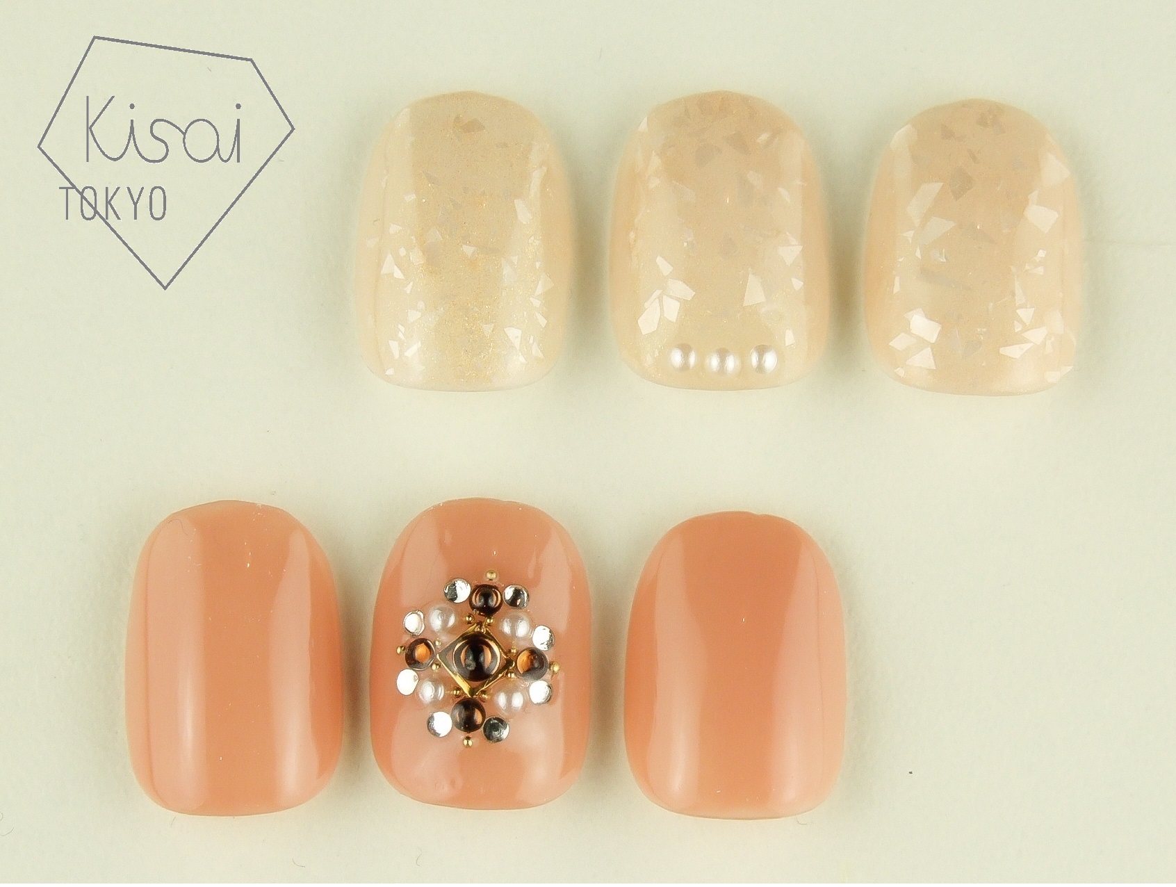 下のネイルは一点盛りのネイルですが、大人っぽく華奢感を残していますので派手過ぎずやりやすいネイルになっています^^