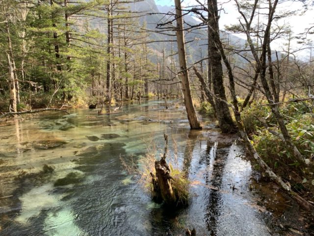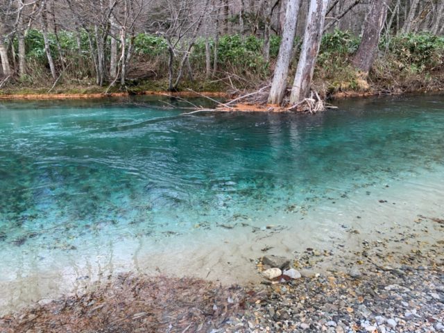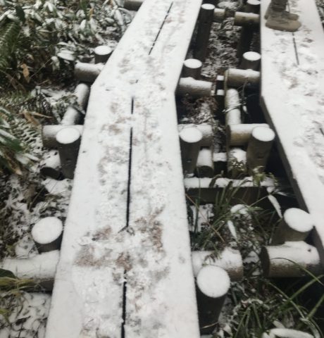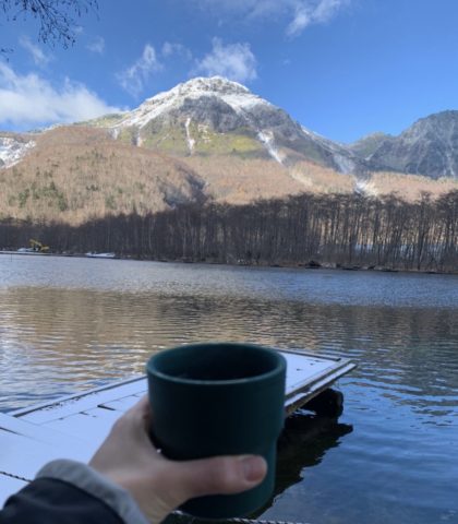 雪の積もった山道のコースを、綺麗な景色を見ながら