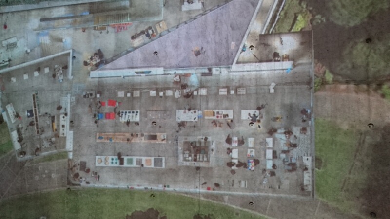 この会場を上空から映した図。距離を変更して会場設営の様子を見ることができます。目一杯近づいたら、腹筋してる人がいたり 笑